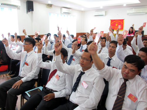 Đảng viên biểu quyết thông qua Nghị quyết Đại hội
