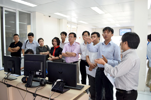 Đoàn đã tham quan Phòng Điều khiển giao thông cũng như trao đổi một số kinh nghiệm về mô hình quản lý, điều hành, khai thác hệ thống camera giám sát giao thông của thành phố.