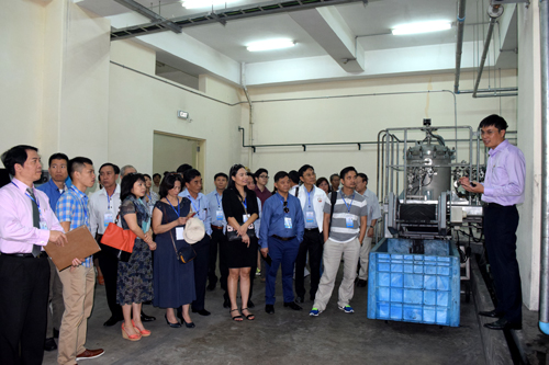 Đoàn tham quan Tháp Thông gió phía Đông và nghe thuyết minh về quy trình thông gió