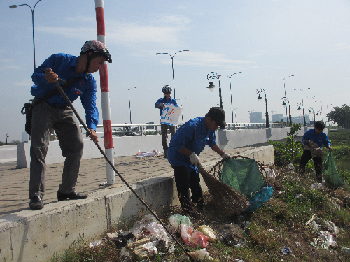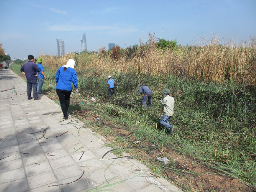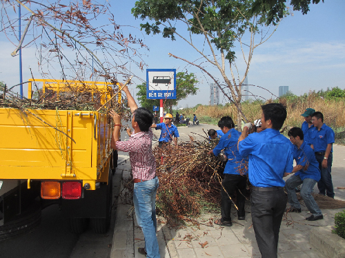 Sáng ngày 14/04/2013 Đoàn viên Thanh niên Trung tâm cùng các bạn đoàn viên của 6 cơ sở đoàn gồm: Công ty TNHH MTV chiếu sáng công cộng, Công ty TNHH MTV Thảo Cầm viên Sài Gòn, Công ty TNHH MTV Thoát nước đô thị, Công ty TNHH MTV Công viên Cây xanh thành phố, Công ty TNHH MTV Công trình Cầu phà thành phố và Công ty TNHH MTV Công trình giao thông Sài Gòn ra quân với nội dung công việc vệ sinh trụ điện chiếu sang; cắt tỉa cây xanh, phát quang cỏ dại; vệ sinh các cầu trên tuyến đường và quét rác trên vỉa hè – lòng đường tuyến đường Mai Chí Thọ ( Từ Trạm thu phí hầm sông Sài Gòn đến ngã 3 Cát lái). Dưới đây là một số hình ảnh hoạt động: