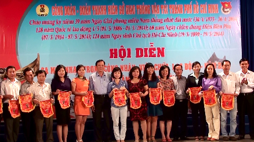 Các đơn vị tham gia Hội diễn nhận cờ lưu niệm từ Ban tổ chức