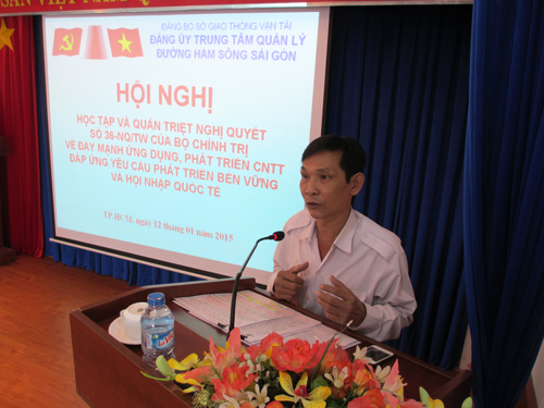 Ngày 12/01/2015, Đảng ủy Trung tâm Quản lý đường hầm sông Sài Gòn đã tổ chức Hội nghị Học tập và quán triệt Nghị quyết số 36-NQ/TW của Bộ Chính trị về “Đẩy mạnh ứng dụng, phát triển công nghệ thông tin đáp ứng yêu cầu phát triển bền vững và hội nhập quốc tế” cho toàn thể đảng viên, cán bộ, viên chức, nhân viên Trung tâm.