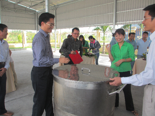 Ban Giám đốc Trung tâm bỏ bánh vào nồi trước khi nấu