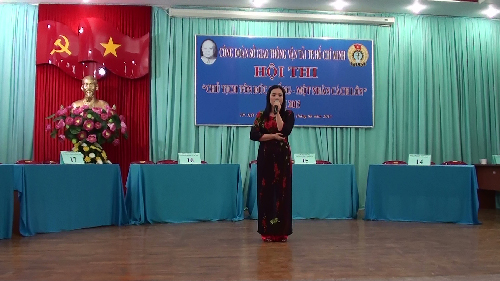 Bà Vũ Thị Ngoãn – Chủ tịch Công đoàn Sở Giao thông vận tải phát biểu tại Hội thi