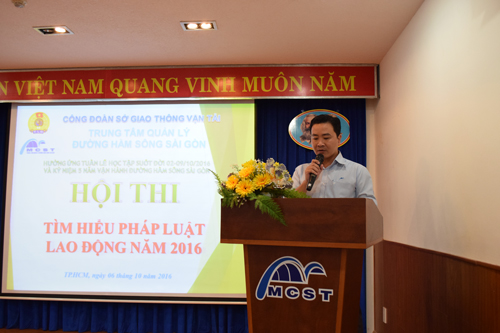 Hưởng ứng Ngày Pháp luật Việt Nam 09/11/2016, thực hiện Kế hoạch số 132/KH-CĐS ngày 05 tháng 9 năm 2016 của Công đoàn Sở Giao thông vận tải về tổ chức Hội thi “Tìm hiểu Pháp luật Lao động - Năm 2016”, chiều ngày 06 tháng 10 năm 2016, Công đoàn Trung tâm Quản lý đường hầm sông Sài Gòn đã tổ chức Hội thi tìm hiểu Pháp luật Lao động - Năm 2016.
