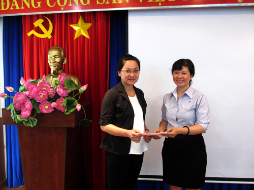 Đ/c Trịnh Thị Kim Châu – Phó Bí thư Chi bộ 1 trao Quyết định kết nạp Đảng cho Đ/c Lâm Ngọc Bích