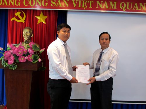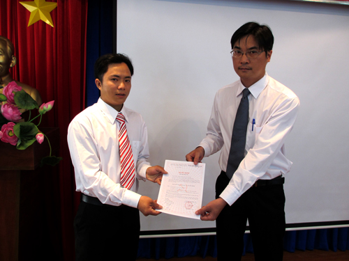 Đ/c Nguyễn Văn Khuê – Bí thư Chi Bộ 4 trao Quyết định kết nạp Đảng cho Đ/c Phan Thanh Quang