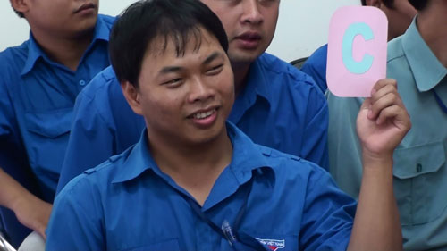 Đoàn viên tự tin với câu trả lời của mình. Ảnh: Anh Dũng.