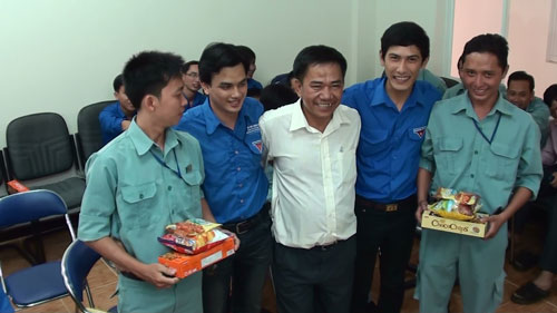 Ông Cao Kim Trọng chia sẻ niềm vui cùng các Đoàn viên nhận phần thưởng.