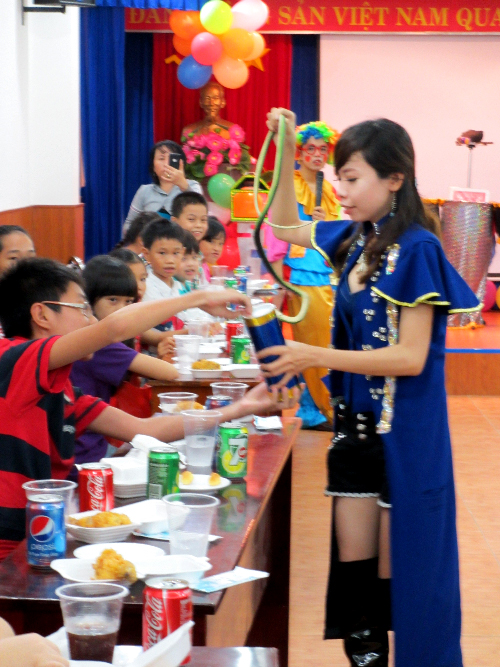 Các cháu thiếu nhi tham gia vui chơi cùng Chú Hề và Ảo thuật gia