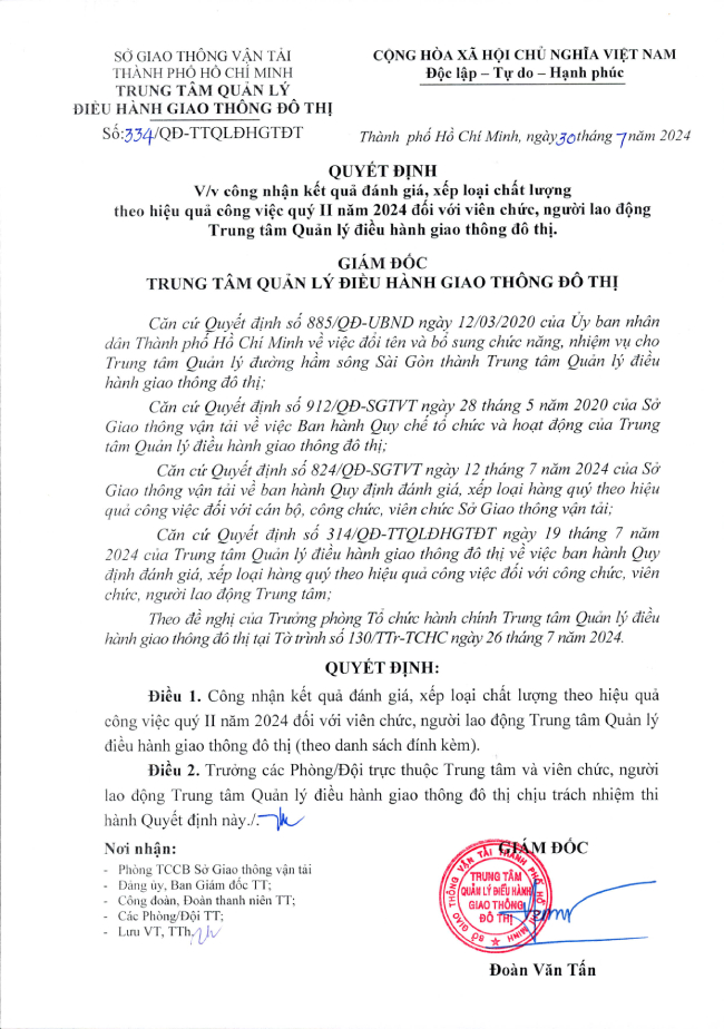 - 2025-06-18 15:51:56 - Quyết định về việc công nhận kết quả đánh giá, xếp loại chất lượng theo hiệu quả công việc quý II năm 2025 đối với viên chức, người lao động Trung tâm Quản lý điều hành giao thông đô thị