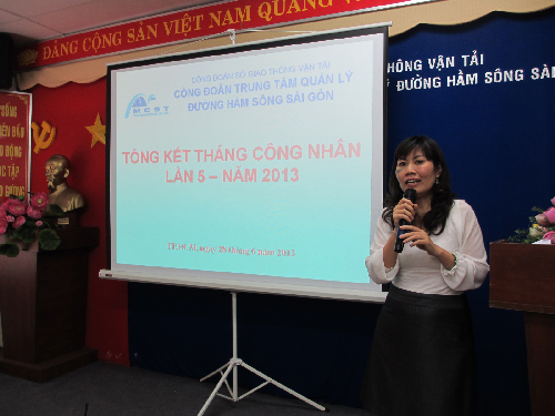 Thay mặt Ban chấp hành Công đoàn đồng chí Văn Thị Hữu Tâm – Chủ tịch Công đoàn báo cáo tổng kết quá trình triển khai hoạt động “Tháng Công nhân” lần 5 – Năm 2013 của Công đoàn Trung tâm Quản lý đường hầm sông Sài Gòn theo Kế hoạch số 78/KH-CĐS ngày 09/4/213 của Công đoàn Sở GTVT, cụ thể: